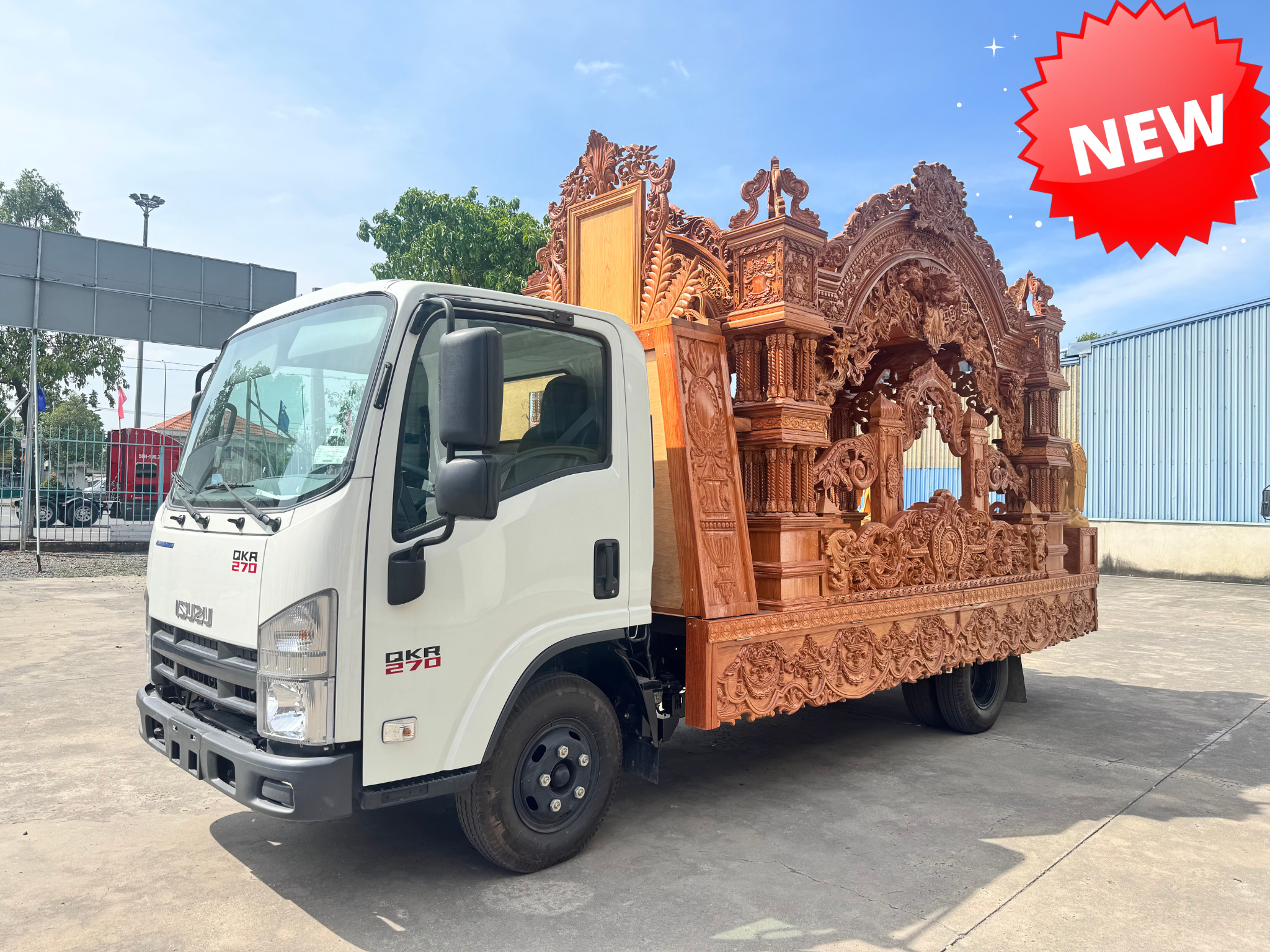 * Xe được đóng trên nền xe ISUZUQKR 270 chất lượng cao. Đây là thương hiệu xe khá nổi tiếng và được nhiều quý khách hàng tin dùng vì có độ bền cao, động cơ mạnh mẽ và bền bỉ. Chính vì vậy, Ô tô Tân Quốc Tuấn đã chọn dòng xe tải này để làm xe nền thiết kế xe chuyên chở quan tài.