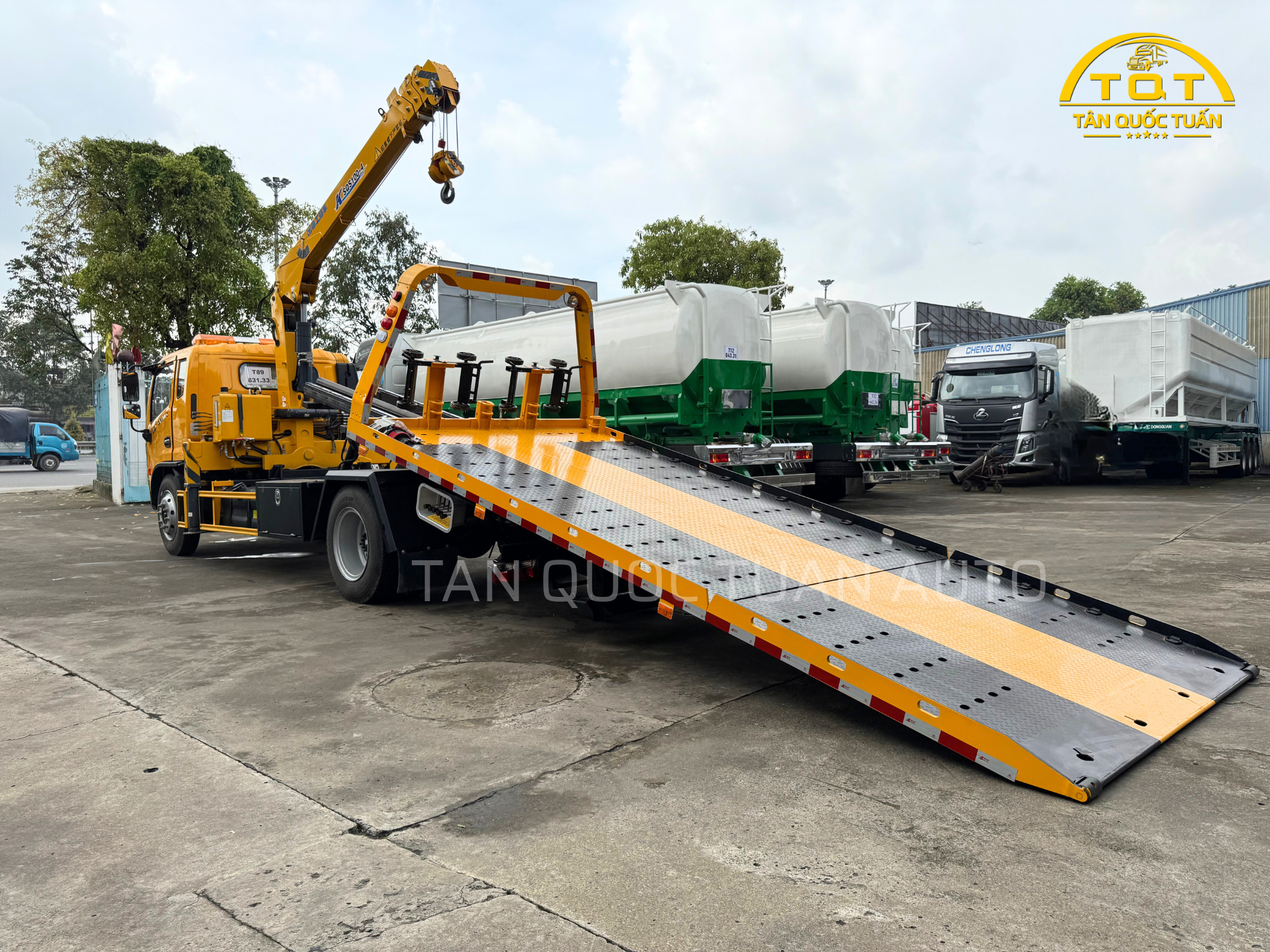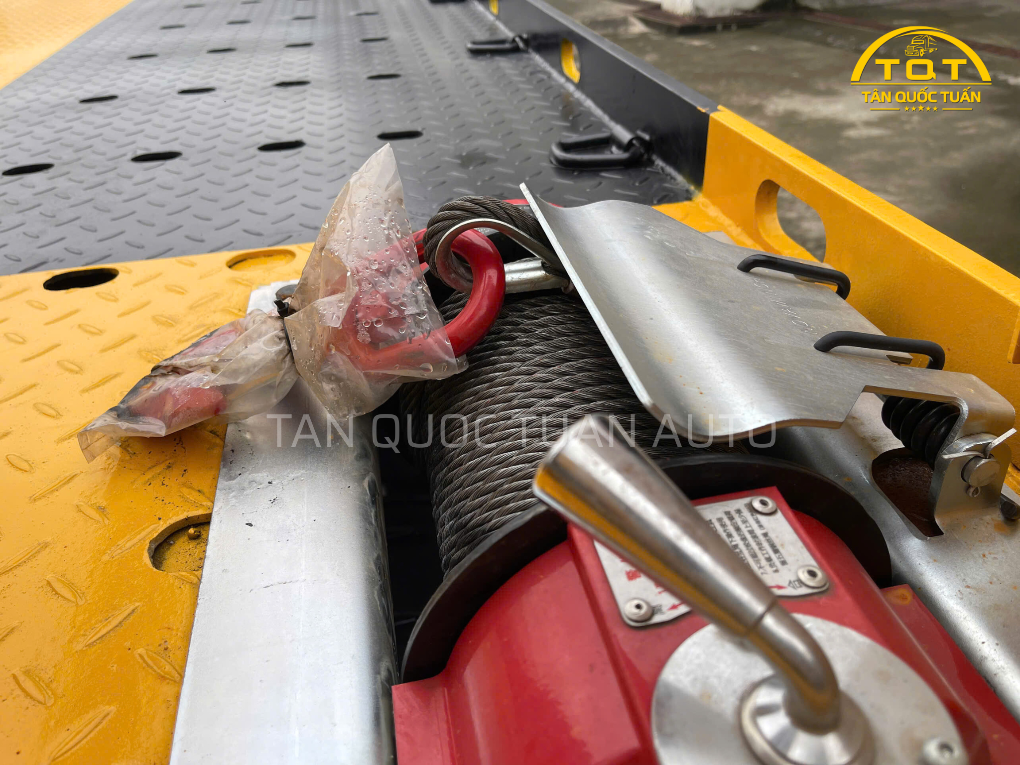 Cẩu: Cần cẩu thủy lực gắn trên xe có khả năng nâng và cẩu các vật nặng, xe khác, hoặc hàng hóa lên sàn xe hoặc di chuyển chúng đến vị trí mong muốn.