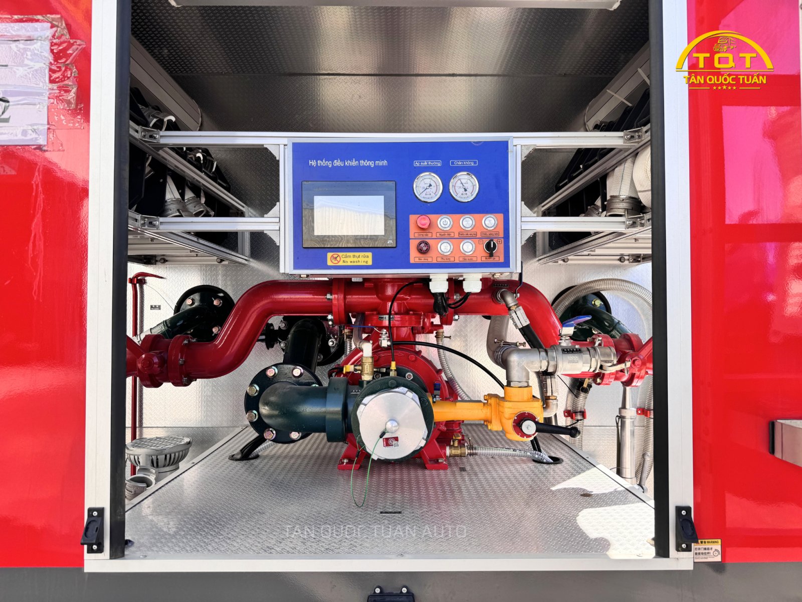 Lưu lượng và áp suất lớn: Hệ thống bơm nước mạnh mẽ cho phép phun nước/foam đi xa và mạnh, tiếp cận hiệu quả các điểm cháy.
